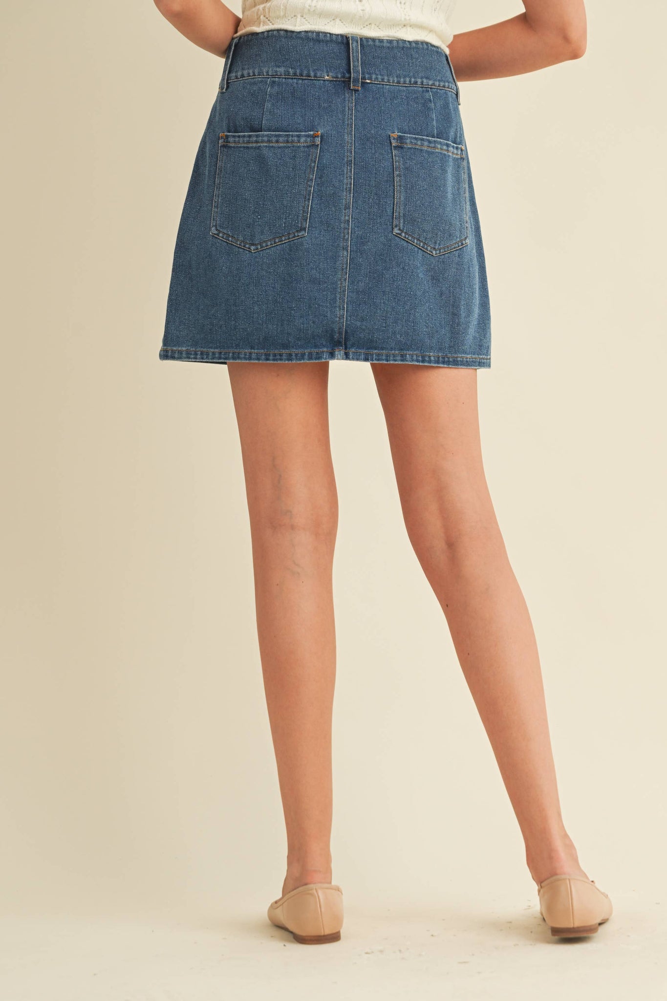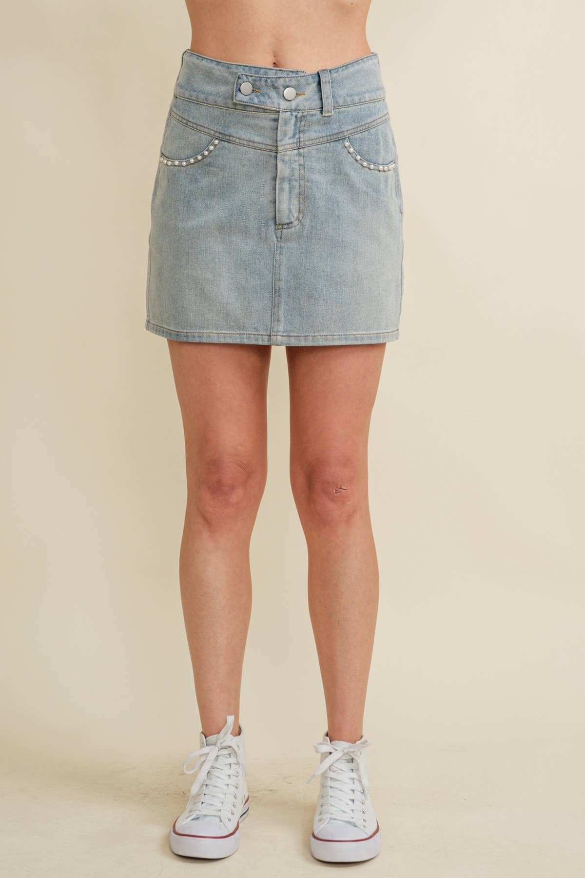 CS5938A - PEARL POCKET DETAIL DENIM SKIRT