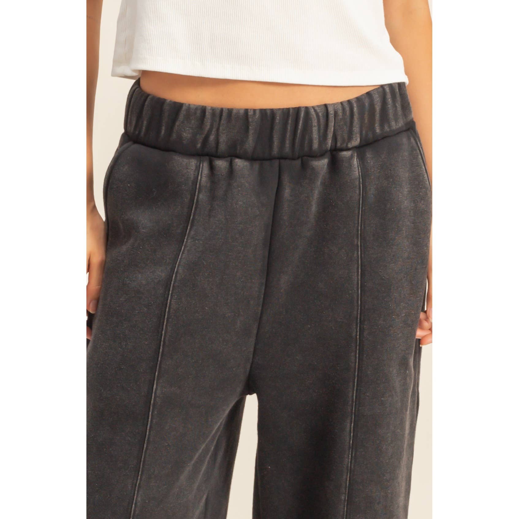 Embrace everyday comfort with these relaxed, textured bottoms featuring a unique snow garment wash, creating a distinct look. Ideal for casual outings, pair them with a simple tee or layered with a snug sweater. Add low-top sneakers for a leisurely yet stylish ensemble.
