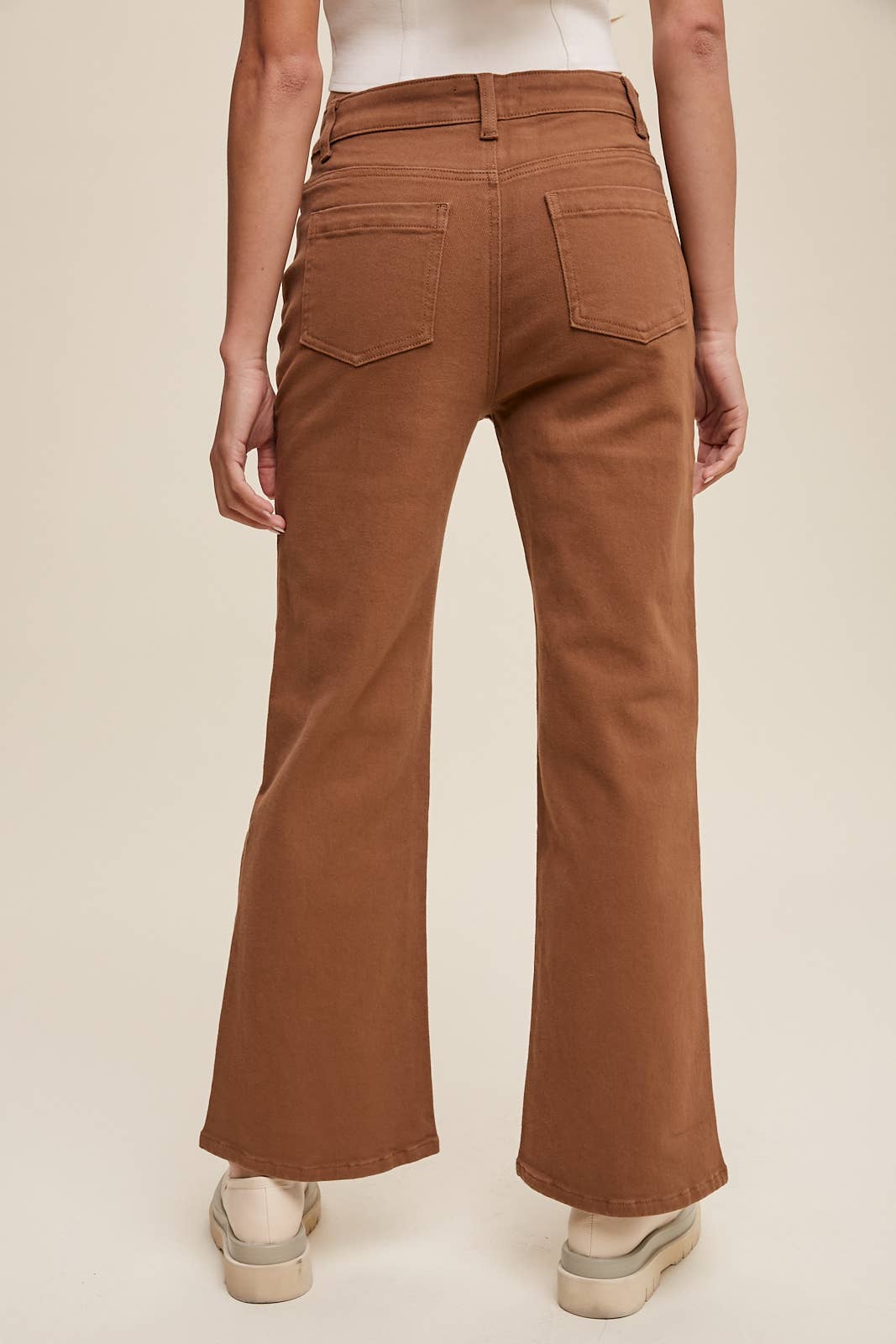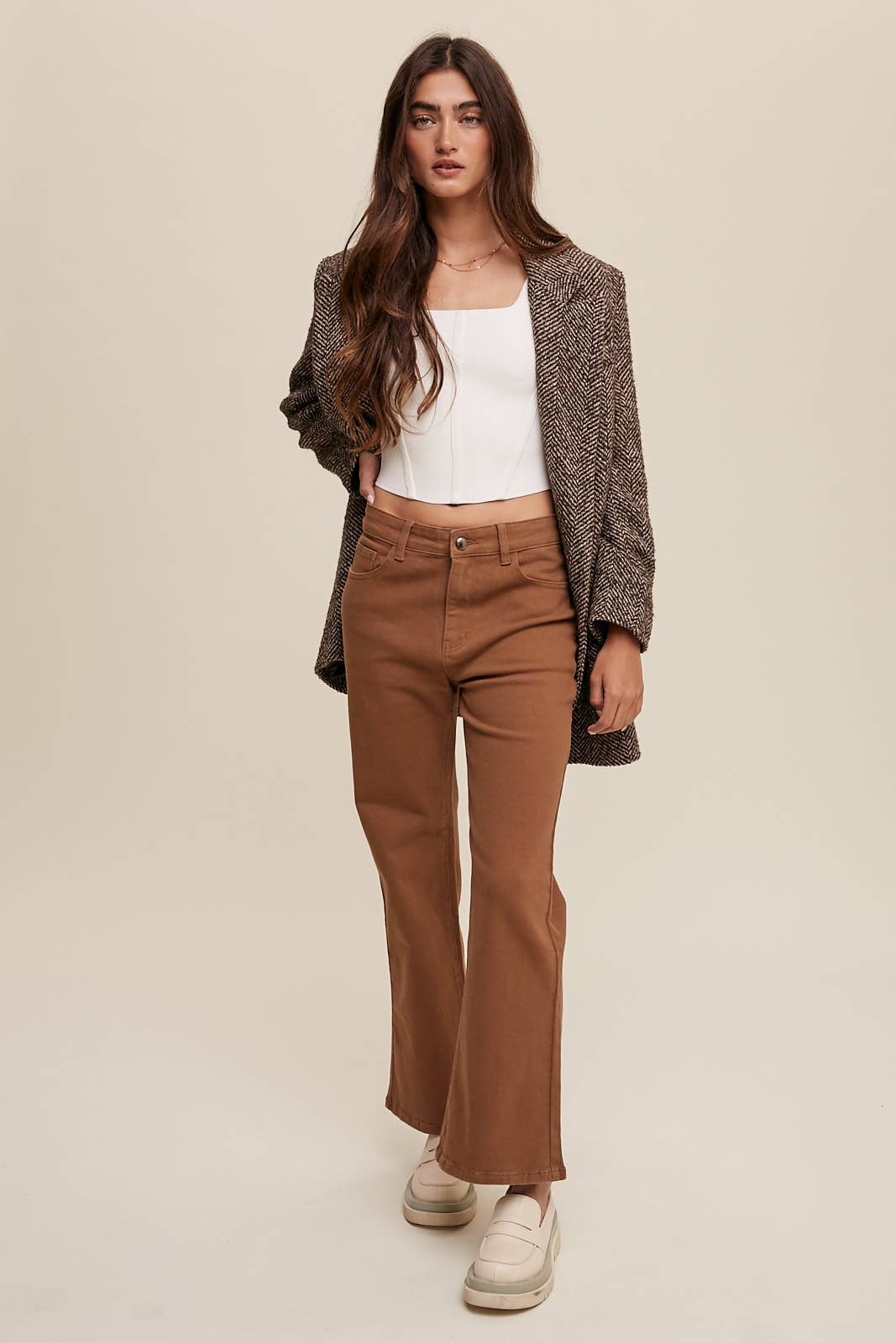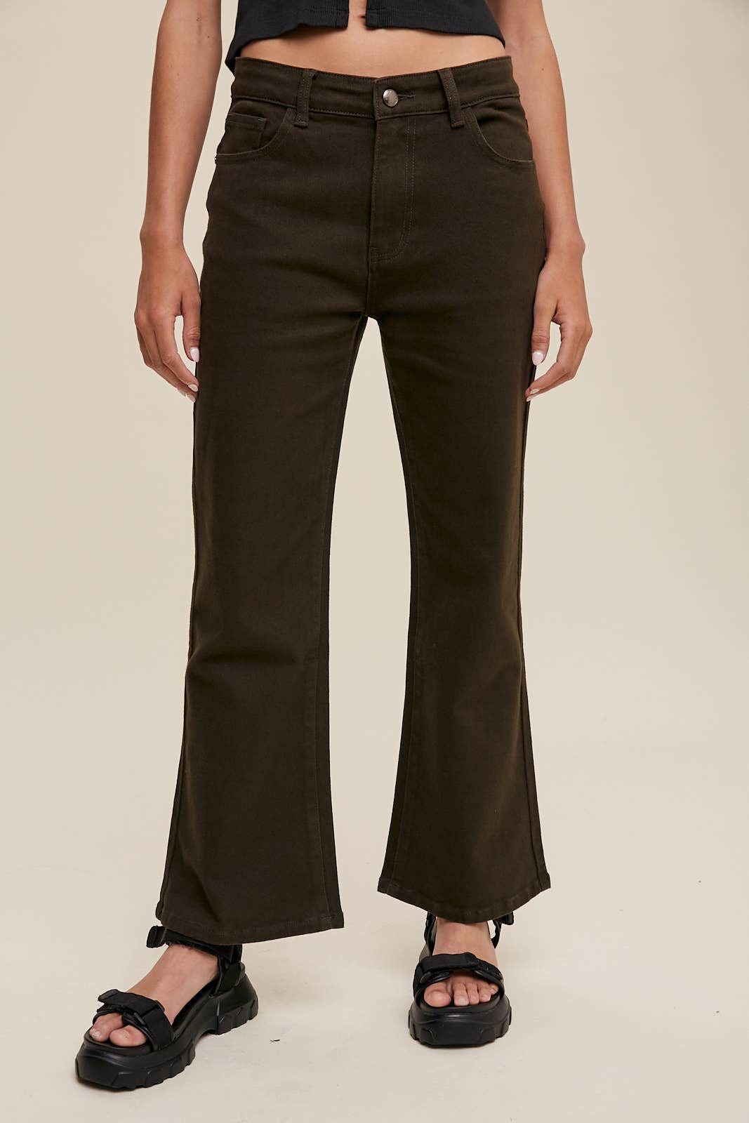 - Flattering Fit: Mid-rise waist with a classic five-pocket silhouette - Stretch Fabric: Made from a soft and stretchy denim blend for added comfort - Flared Hem: Slight flare from the knee down for a modern retro vibe - Clean Finish: Secure zip fly with button closure and tonal topstitching - Everyday Style: Versatile design pairs effortlessly with casual or elevated looks - Model is 5' 7" 31-24-35 and wearing a size Small Soft stretch denim and a clean flare cut make these pants a stylish and comfortable essential for every day.