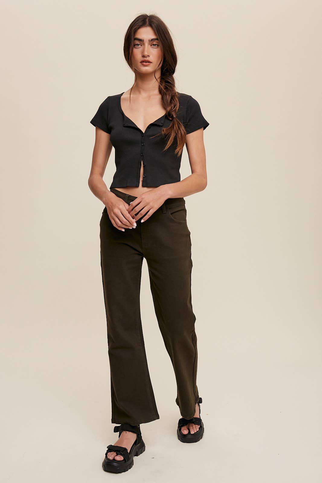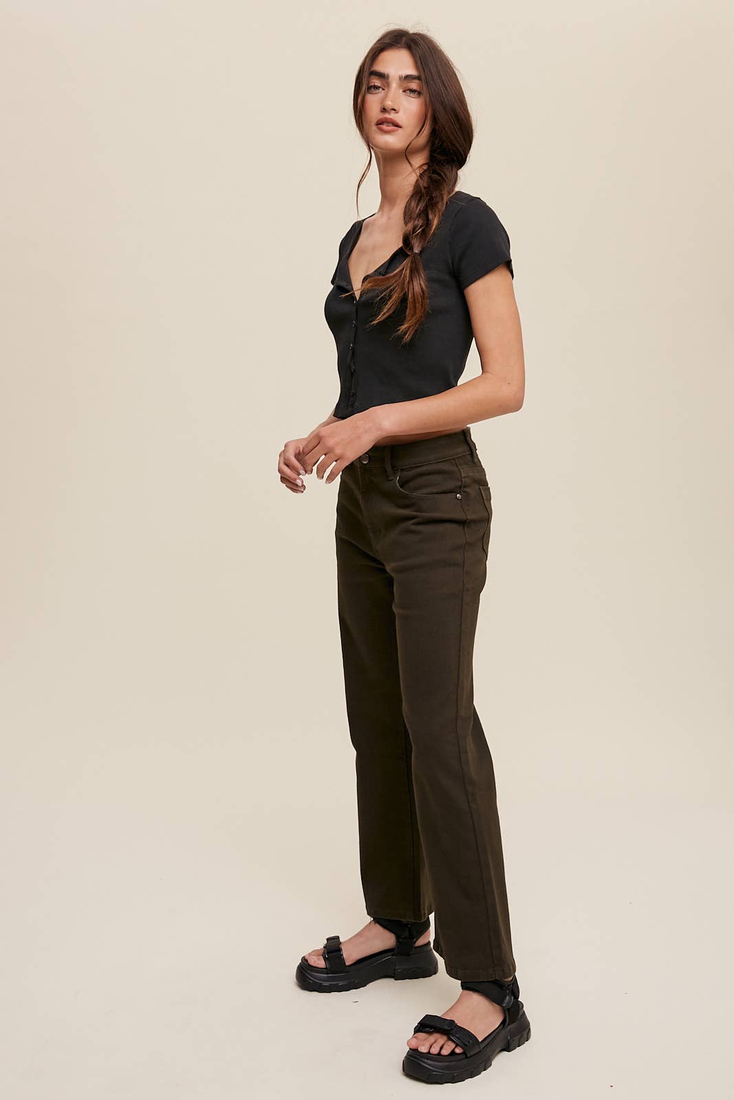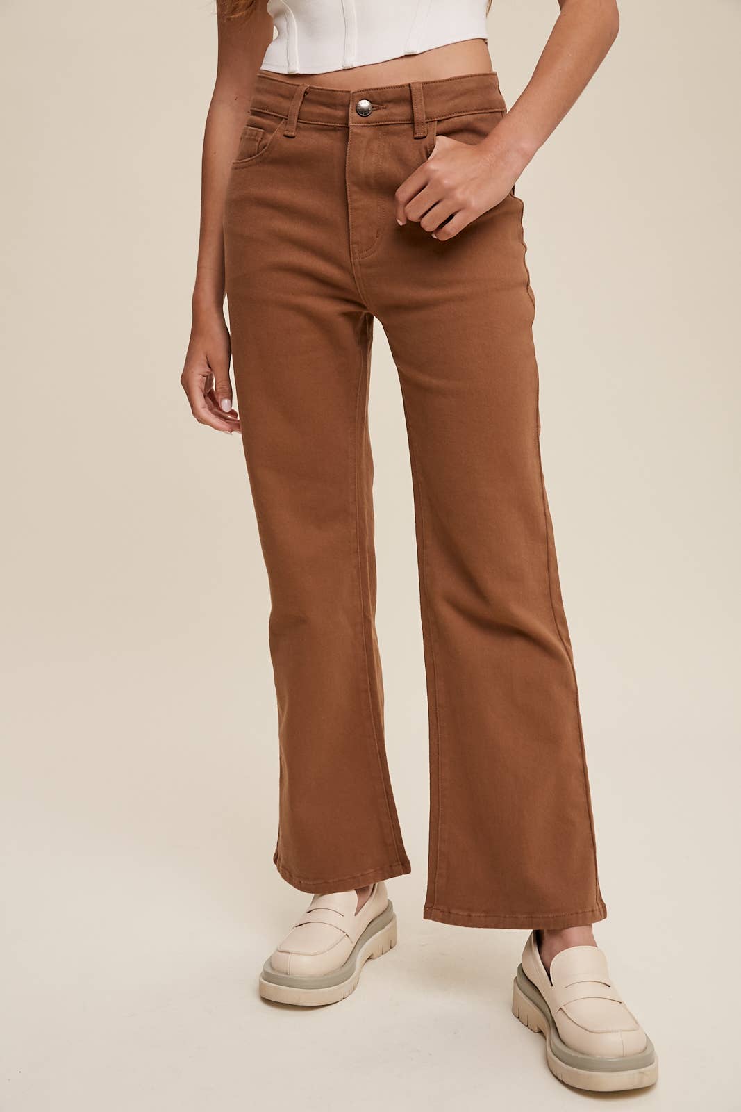 - Flattering Fit: Mid-rise waist with a classic five-pocket silhouette - Stretch Fabric: Made from a soft and stretchy denim blend for added comfort - Flared Hem: Slight flare from the knee down for a modern retro vibe - Clean Finish: Secure zip fly with button closure and tonal topstitching - Everyday Style: Versatile design pairs effortlessly with casual or elevated looks - Model is 5' 7" 31-24-35 and wearing a size Small Soft stretch denim and a clean flare cut make these pants a stylish and comfortable essential for every day.