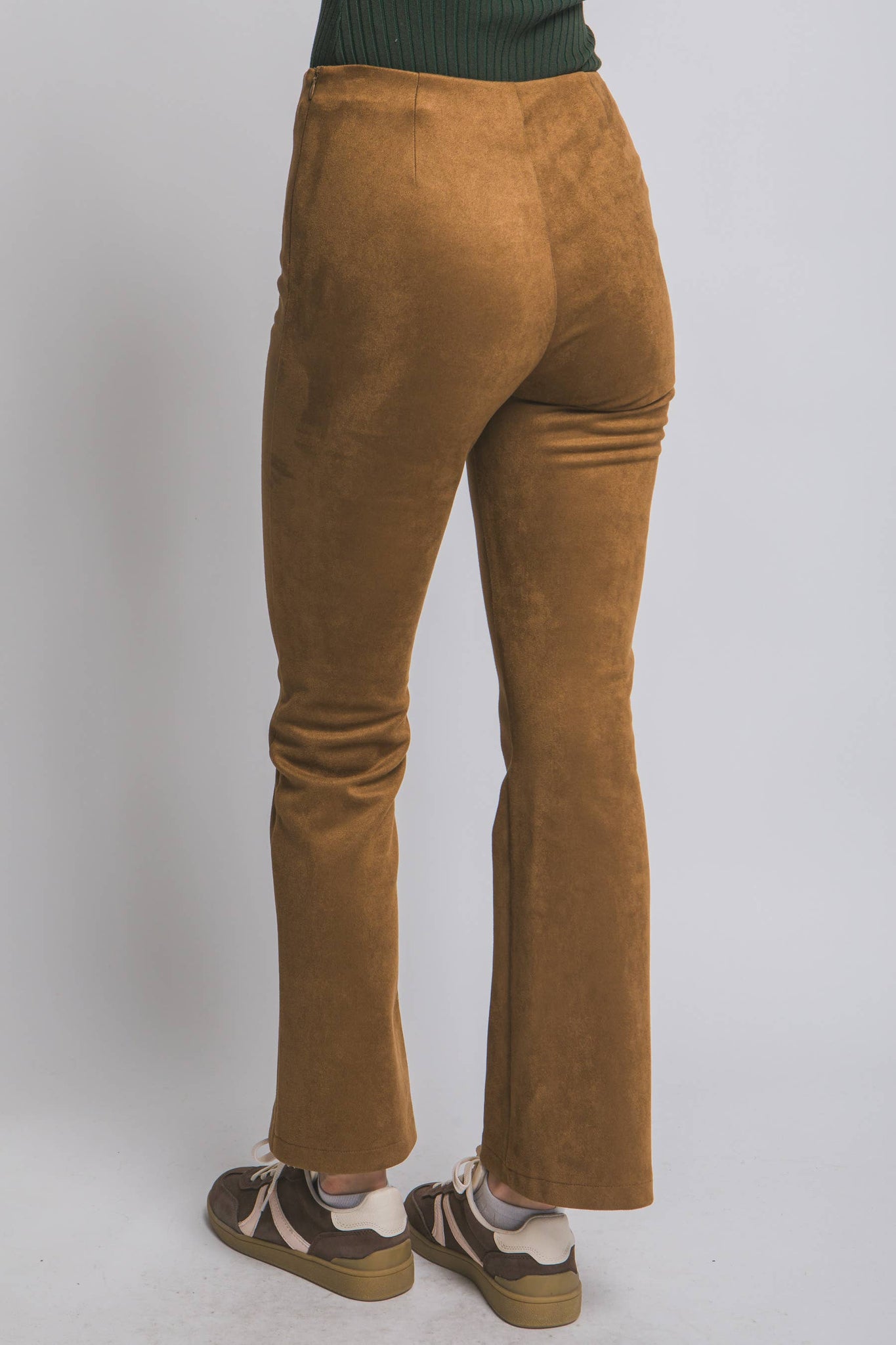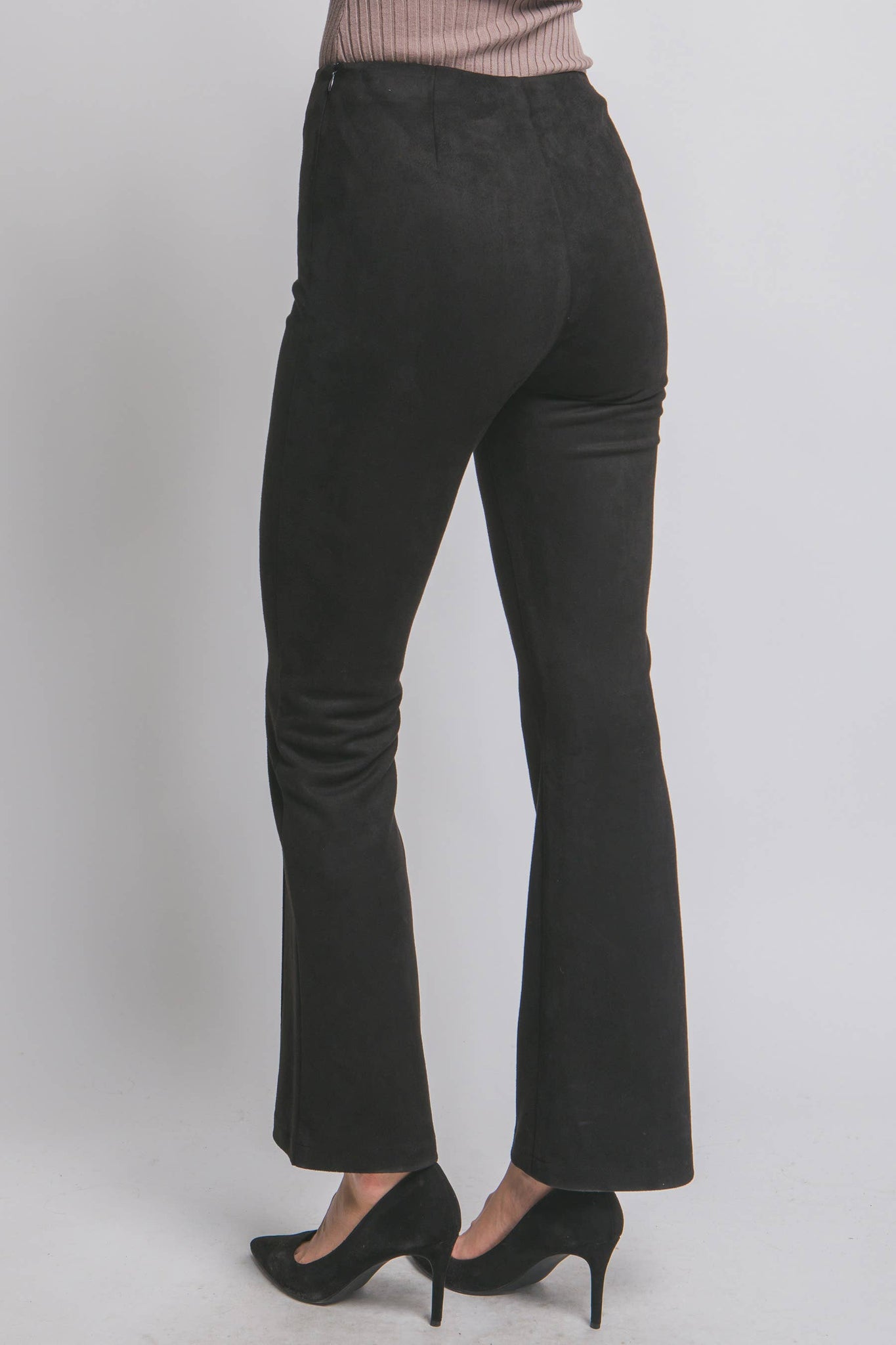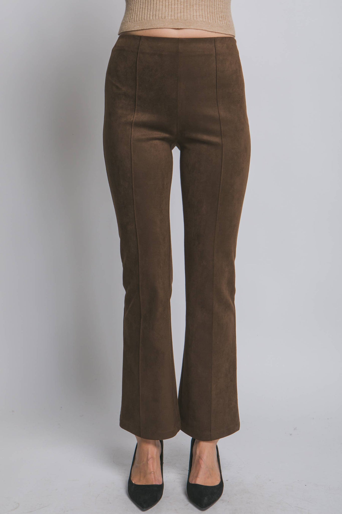 FAUX SUEDE FLARE HIGH WAISTED PANTS