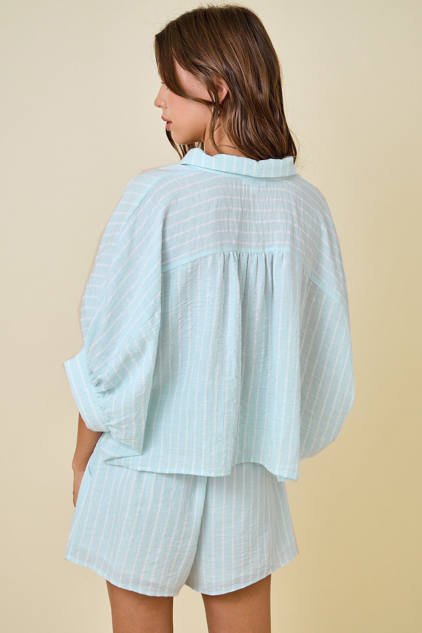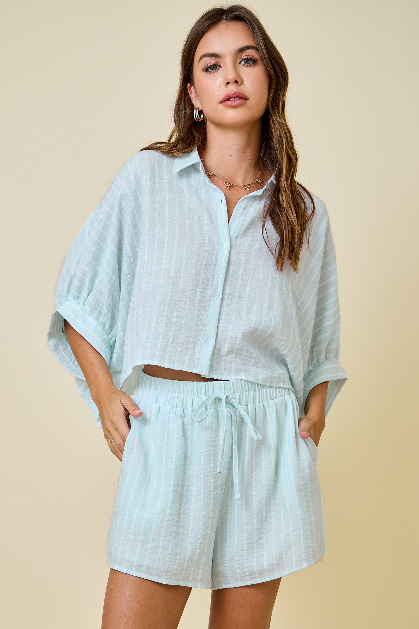 Striped Button Down Shirt And Matching Shorts Set