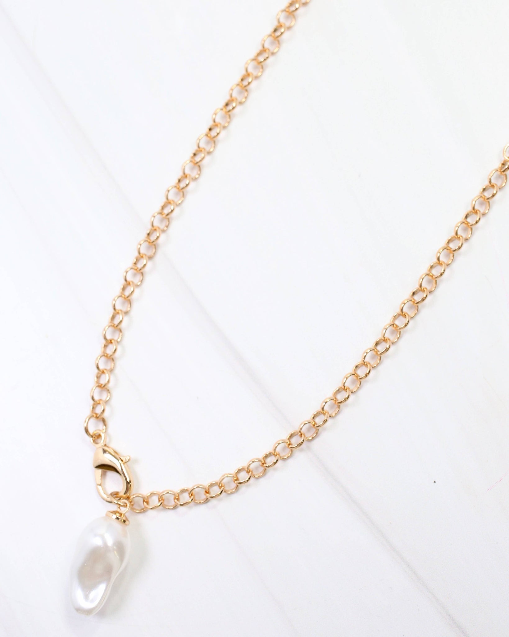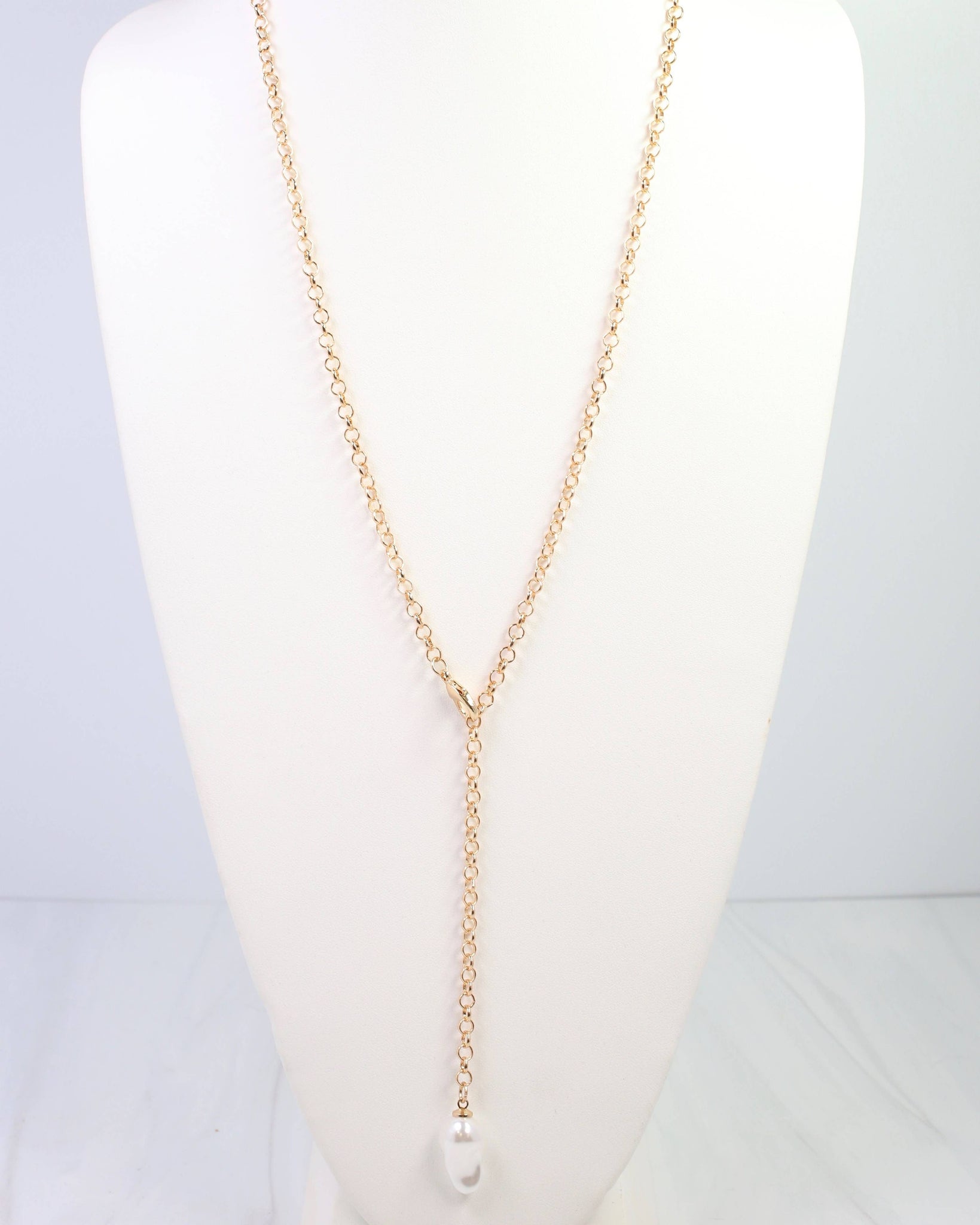 Discover timeless elegance with the Harrodsburg Long Link Necklace, featuring a gold finish and a front clasp adorned with a delicate pearl charm. This necklace combines classic sophistication with modern design, perfect for adding a refined touch to any outfit. Elevate your style effortlessly with this standout piece. Dimensions: * 16.5" Length