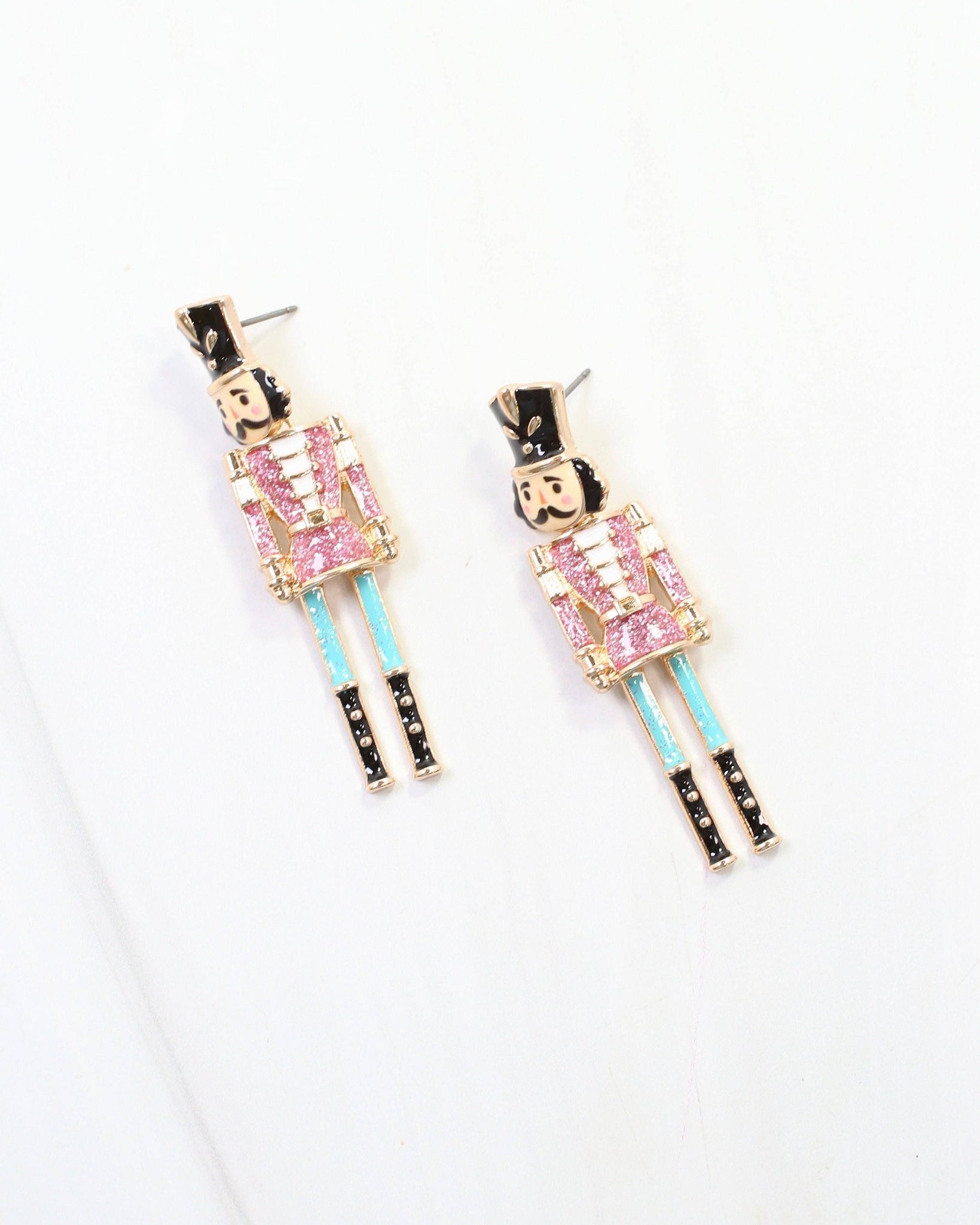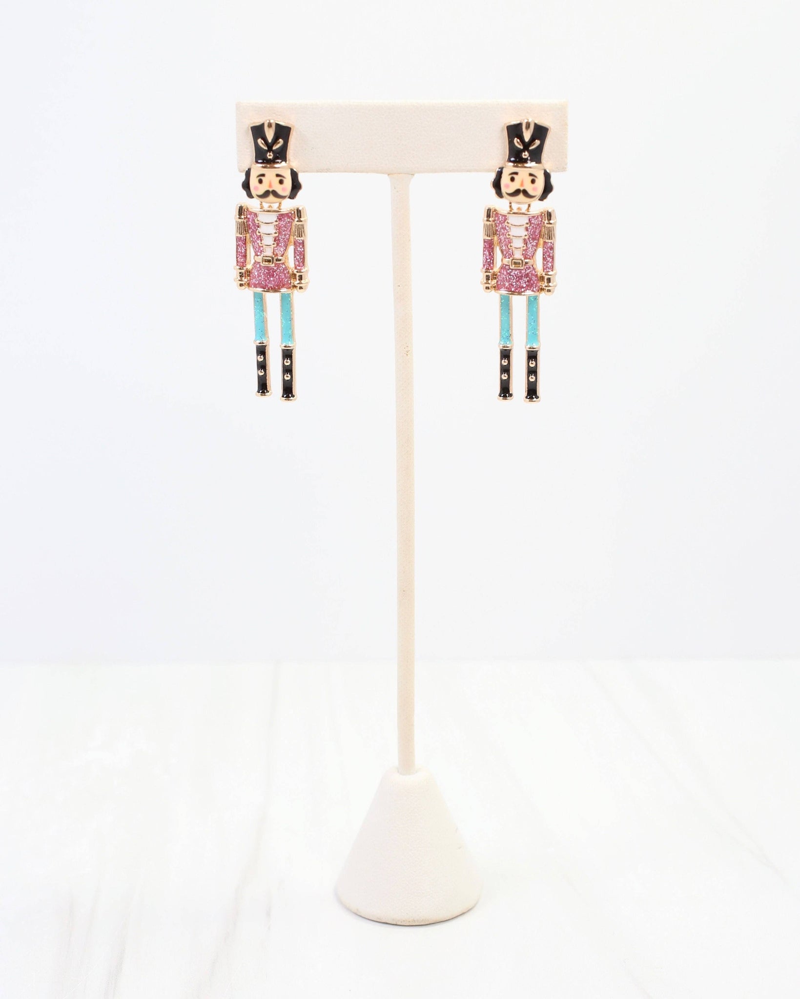 Make a bold statement with the Naughty or Nice Nutcracker Earring in pink. These enamel dangly earrings capture the regal charm of a classic nutcracker with a vibrant, fashionable twist. Perfect for adding a playful yet sophisticated touch to your holiday look.