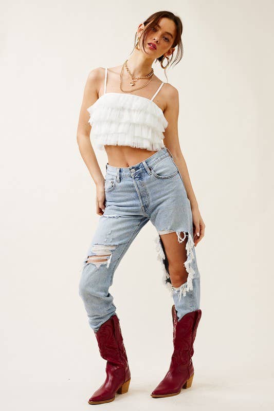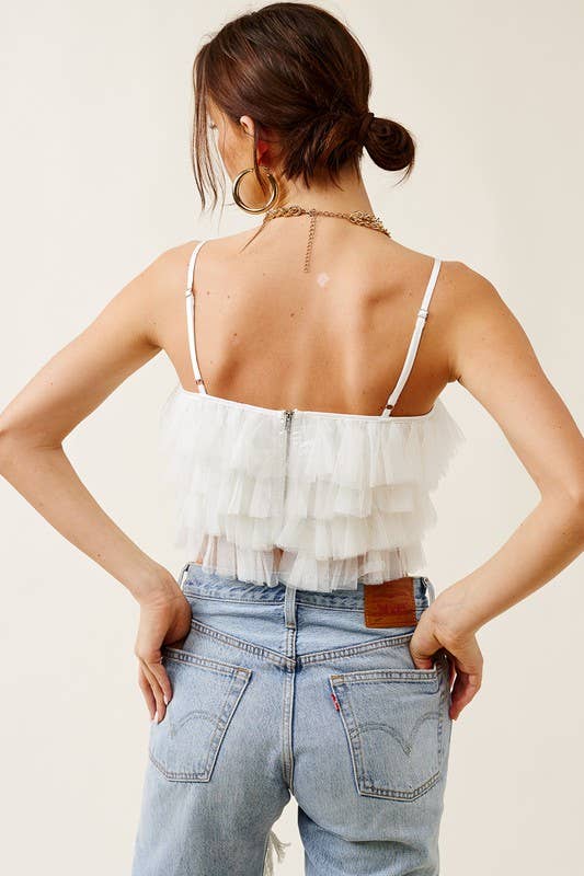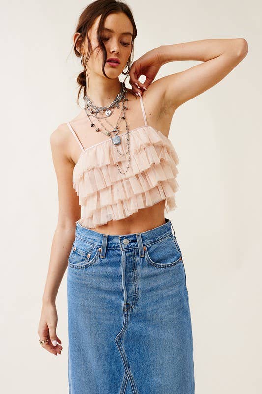 Ruffled Tulle Tiered Cropped Tank Top