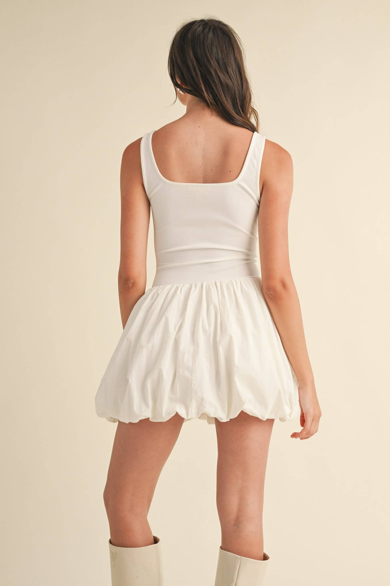 BUBBLE HEM MIXED MEDIA MINI DRESS
