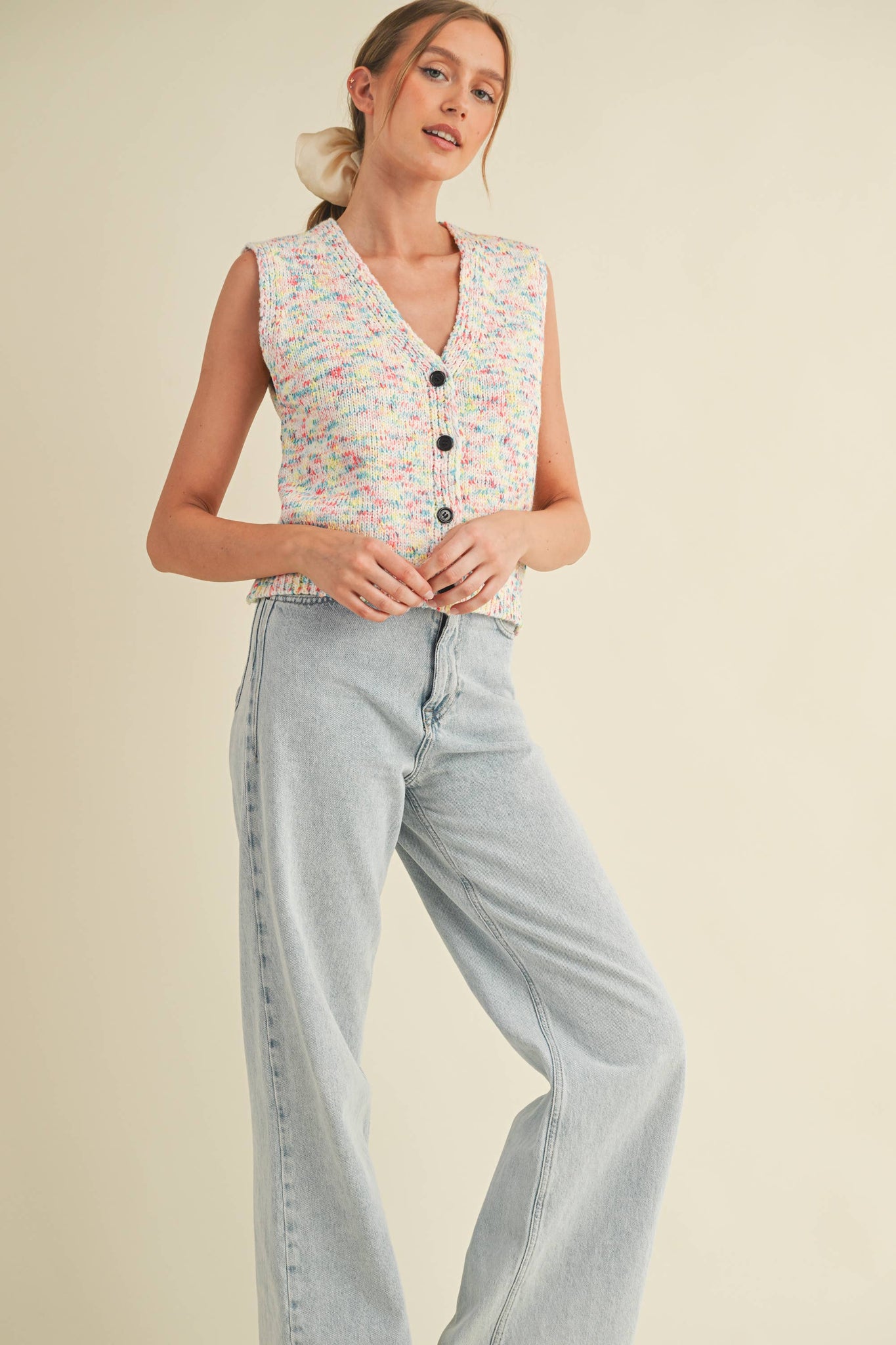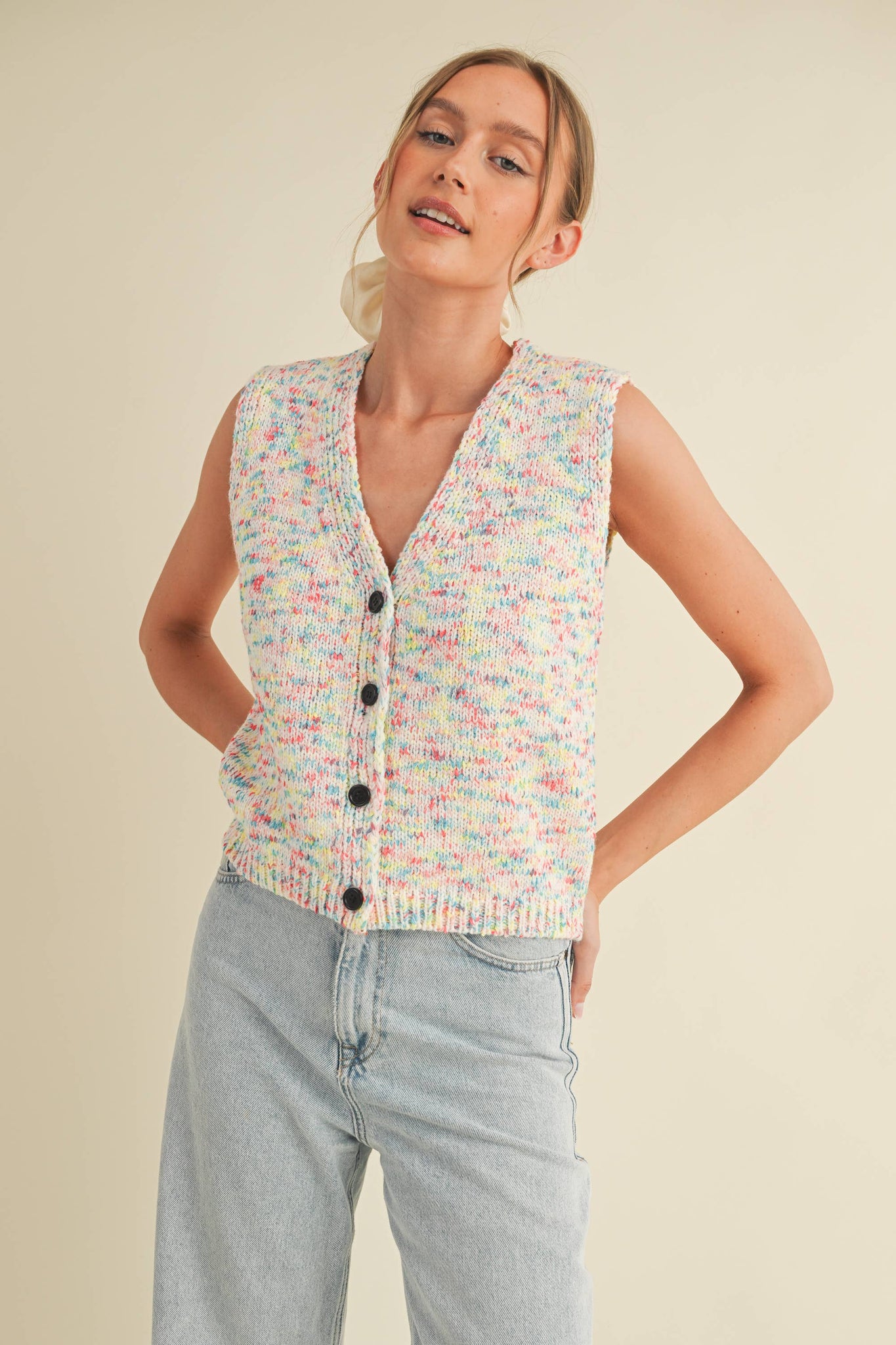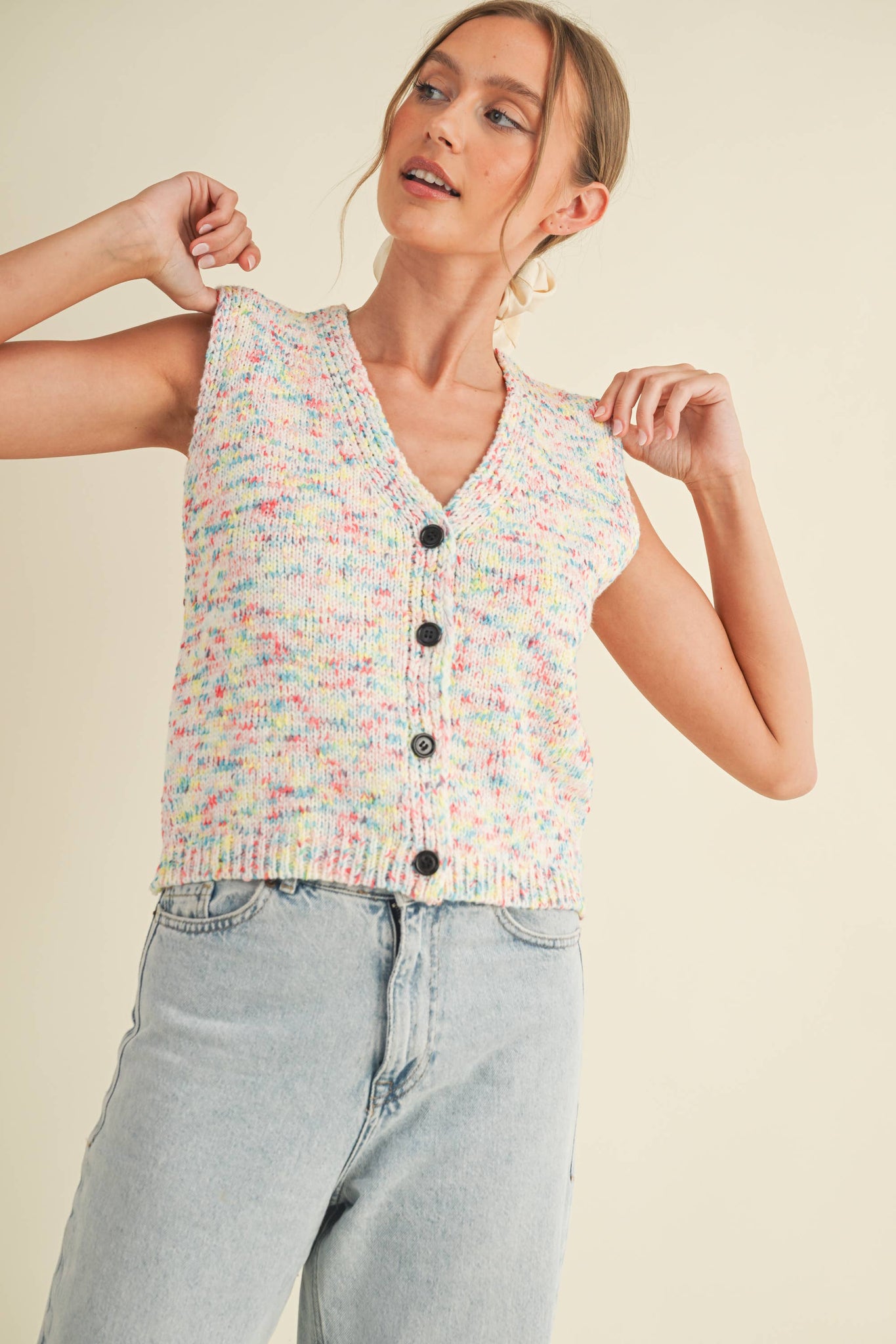 CSW13546 - MULTI COLOR BUTTON UP SWEATER VEST