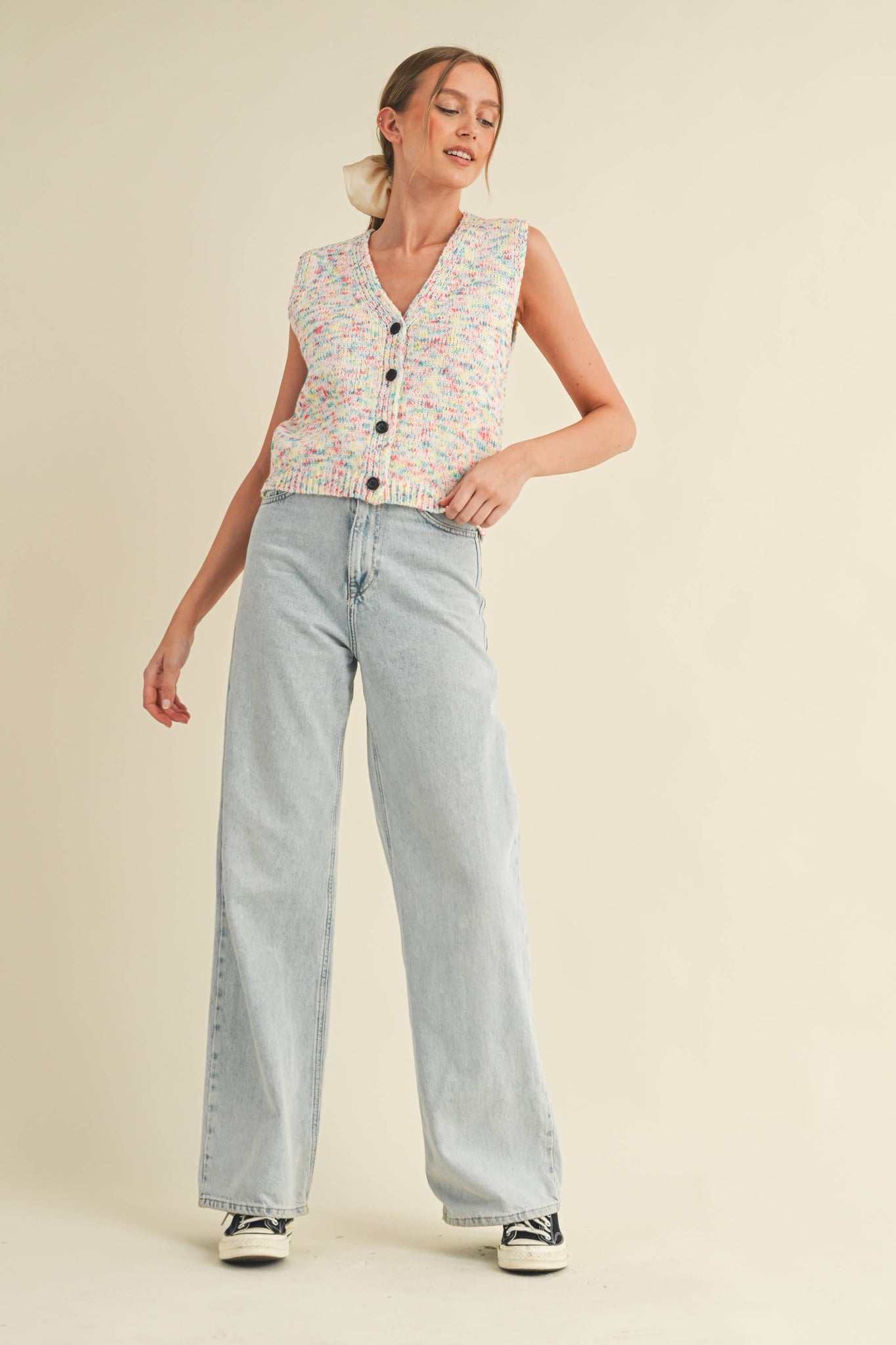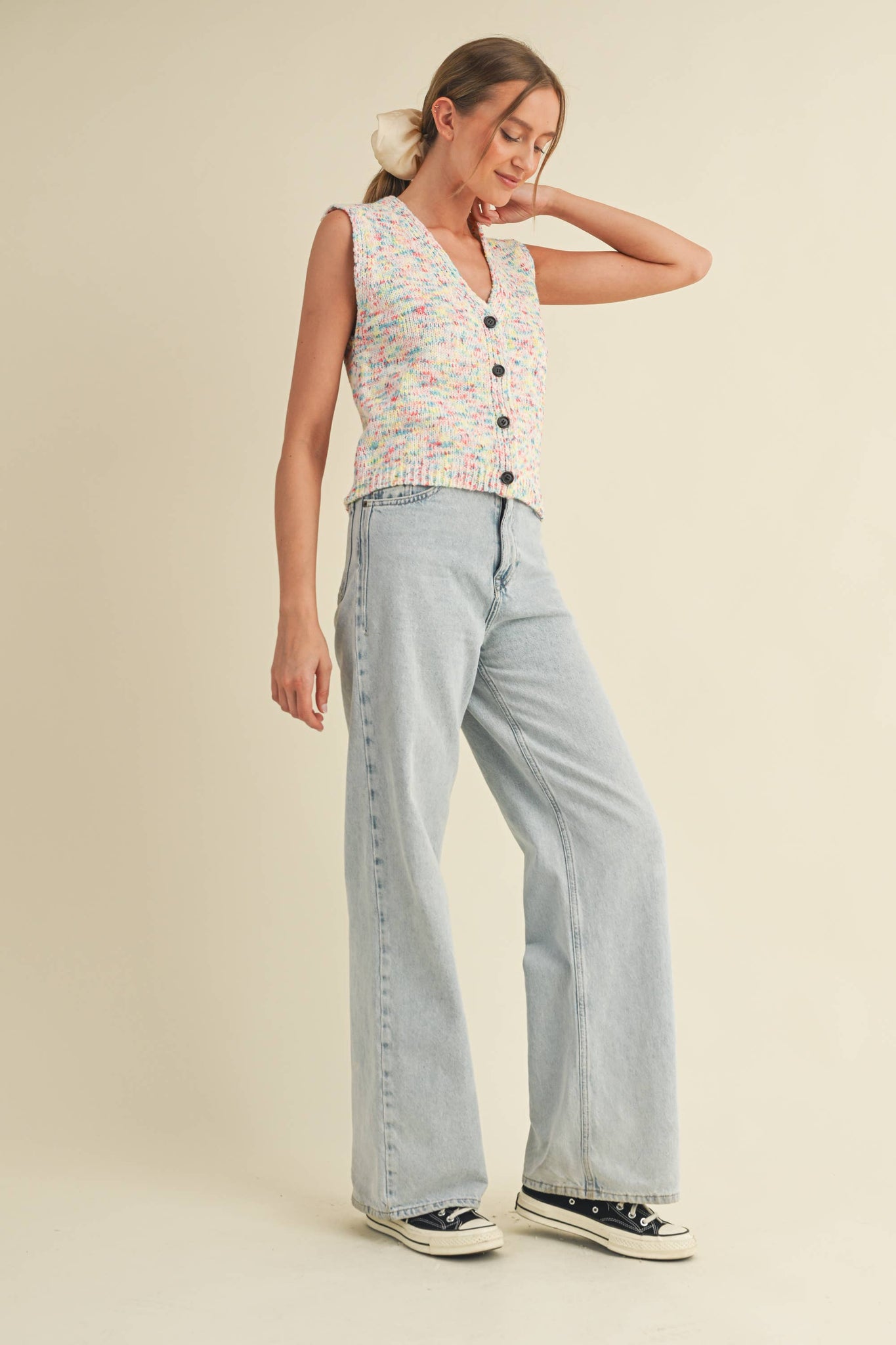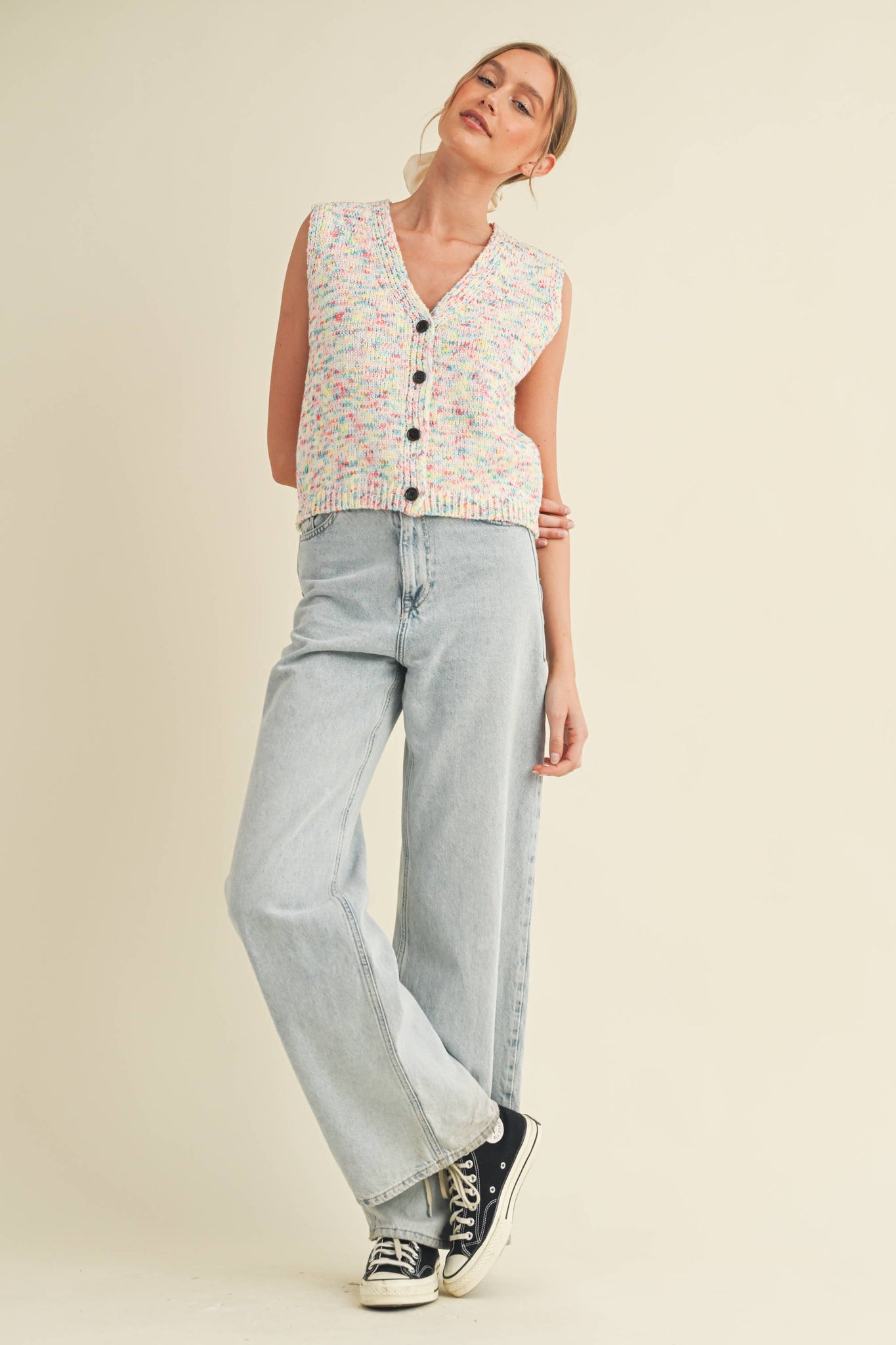 CSW13546 - MULTI COLOR BUTTON UP SWEATER VEST