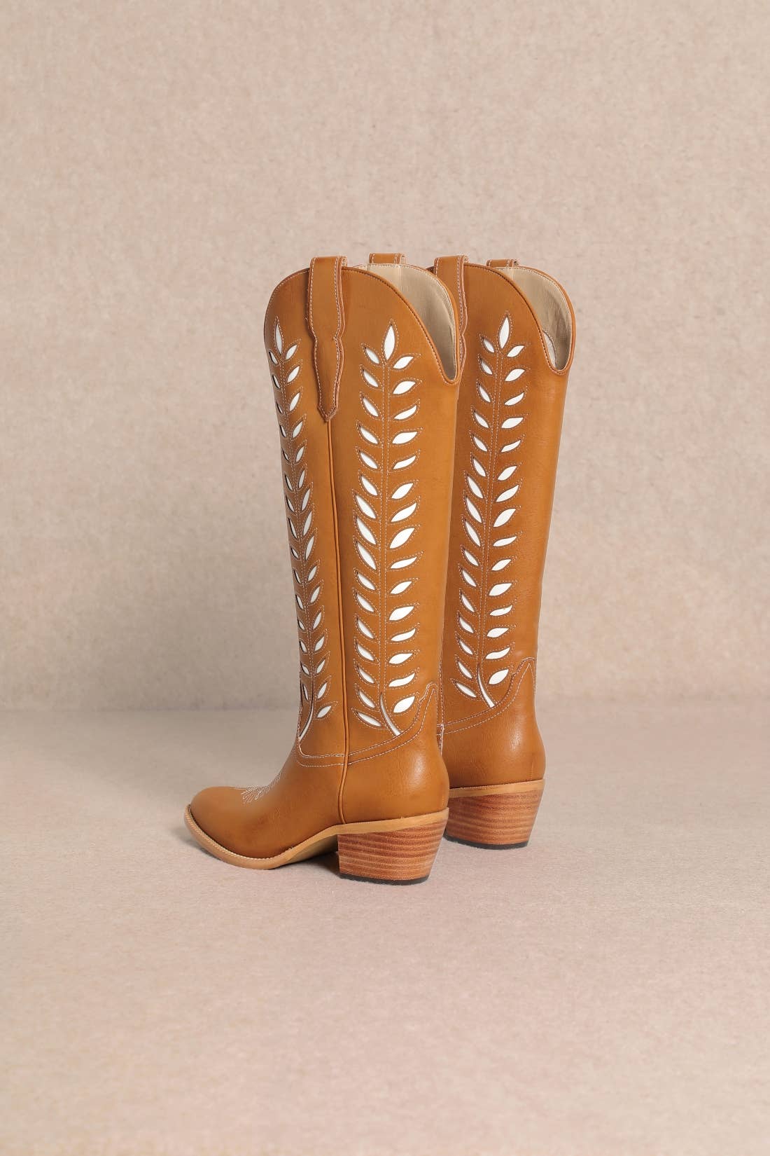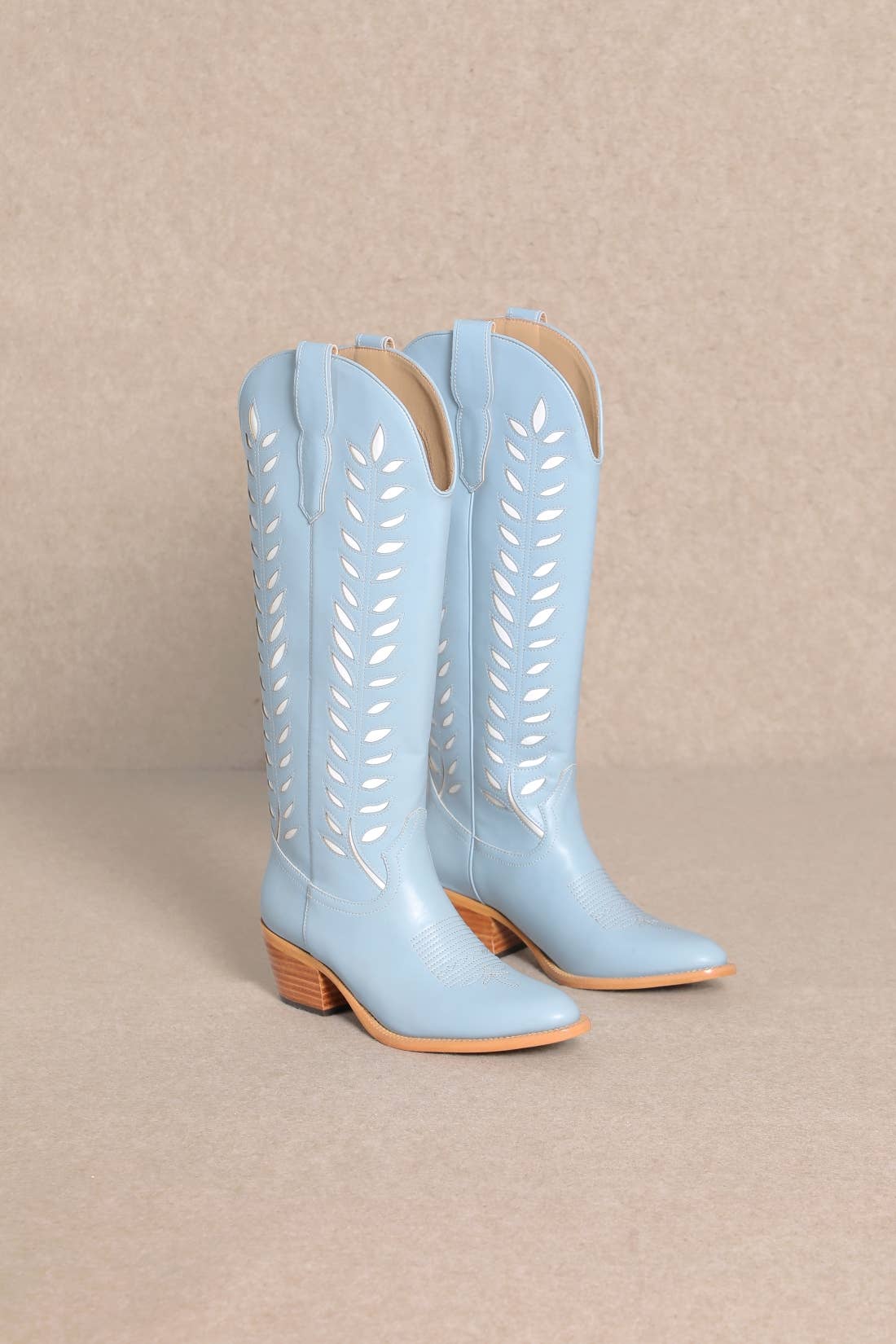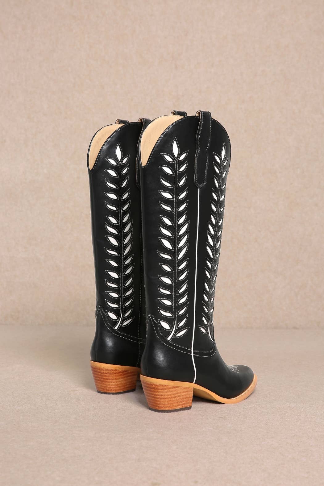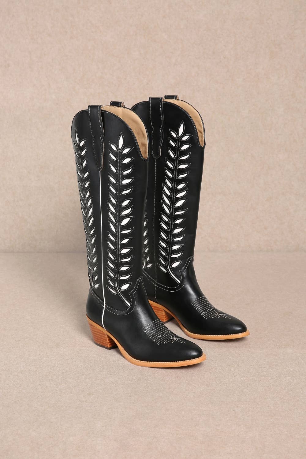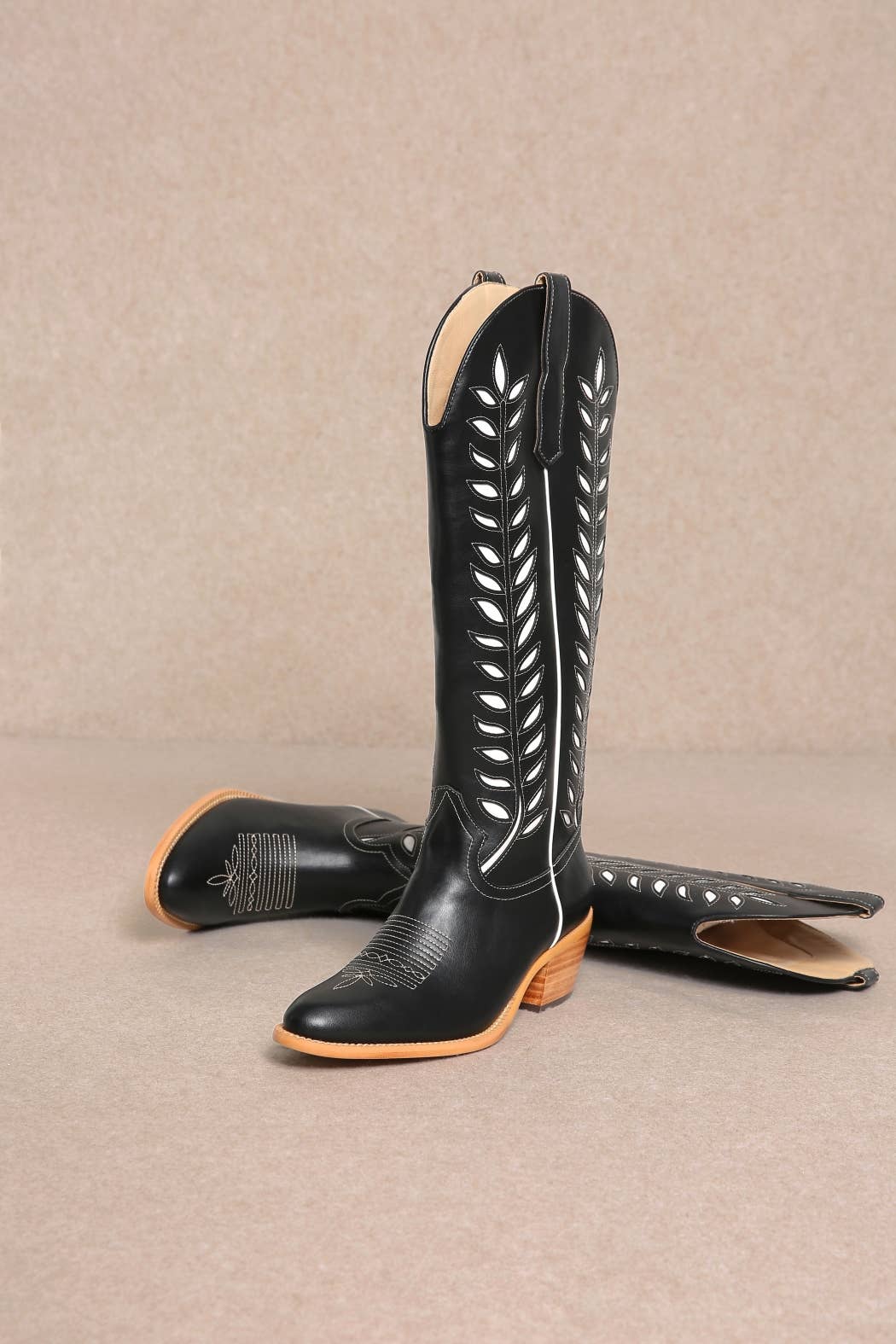 LUCIA LEAVES CUT OUT DESIGN TALL COWBOY BOOTS