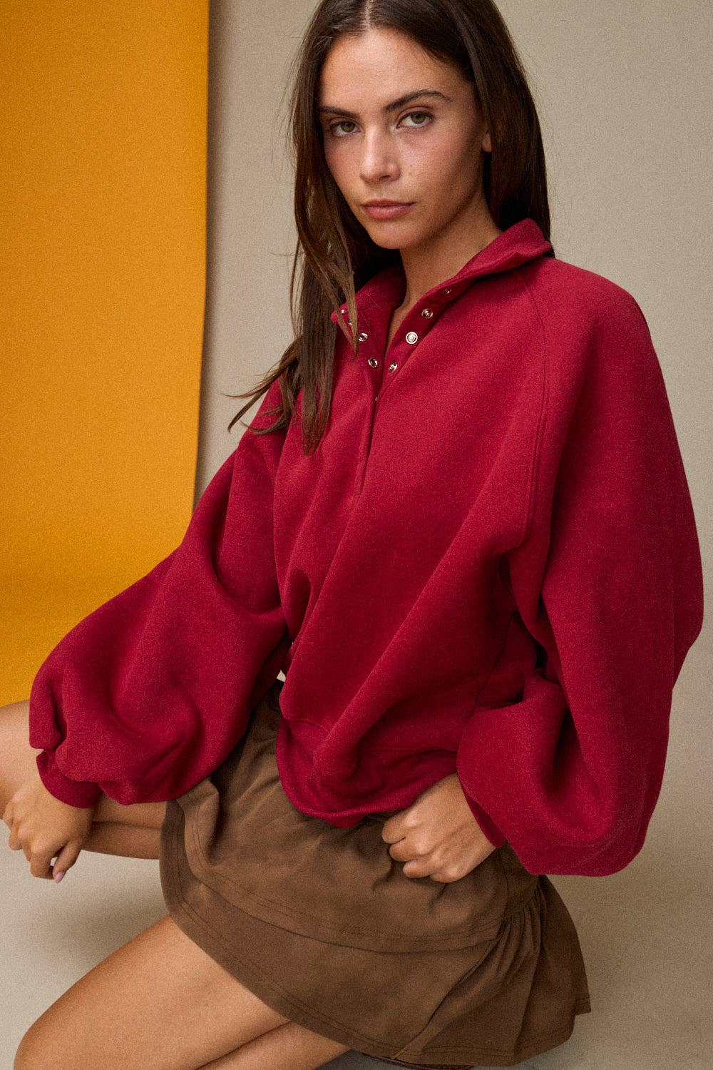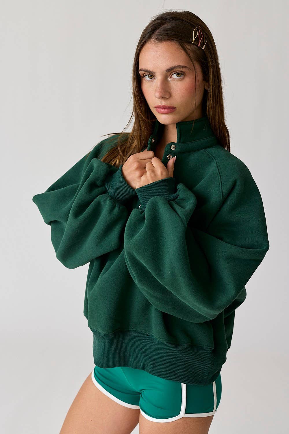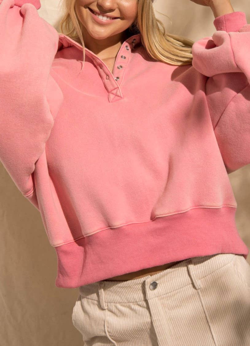 Piper Snap Button Collared Sweater -Snap Button Collared Sweat Shirt -Washed Effect -Relaxed Fit SPEC Length 23 1/2 Chest 24 3/4 Sleeve 29 Model's height is 5'7" and wearing a size S